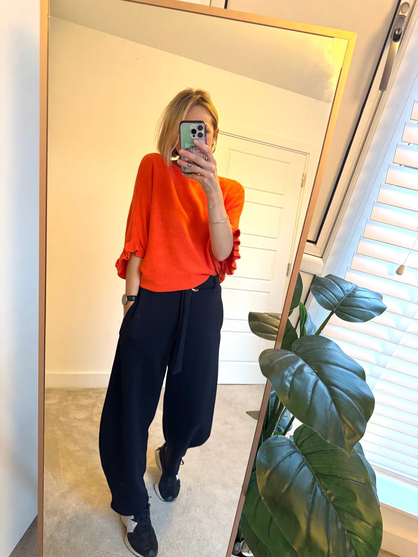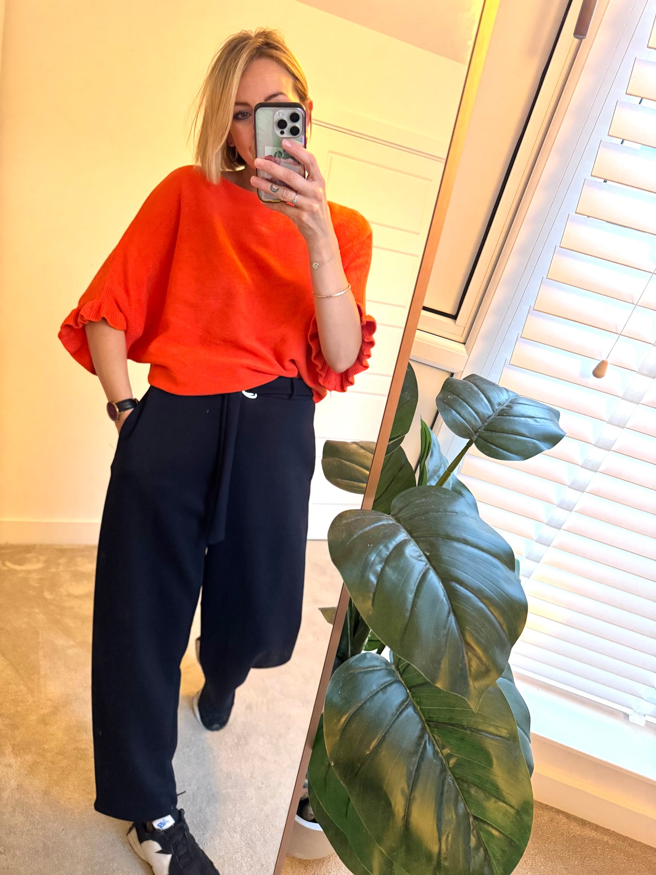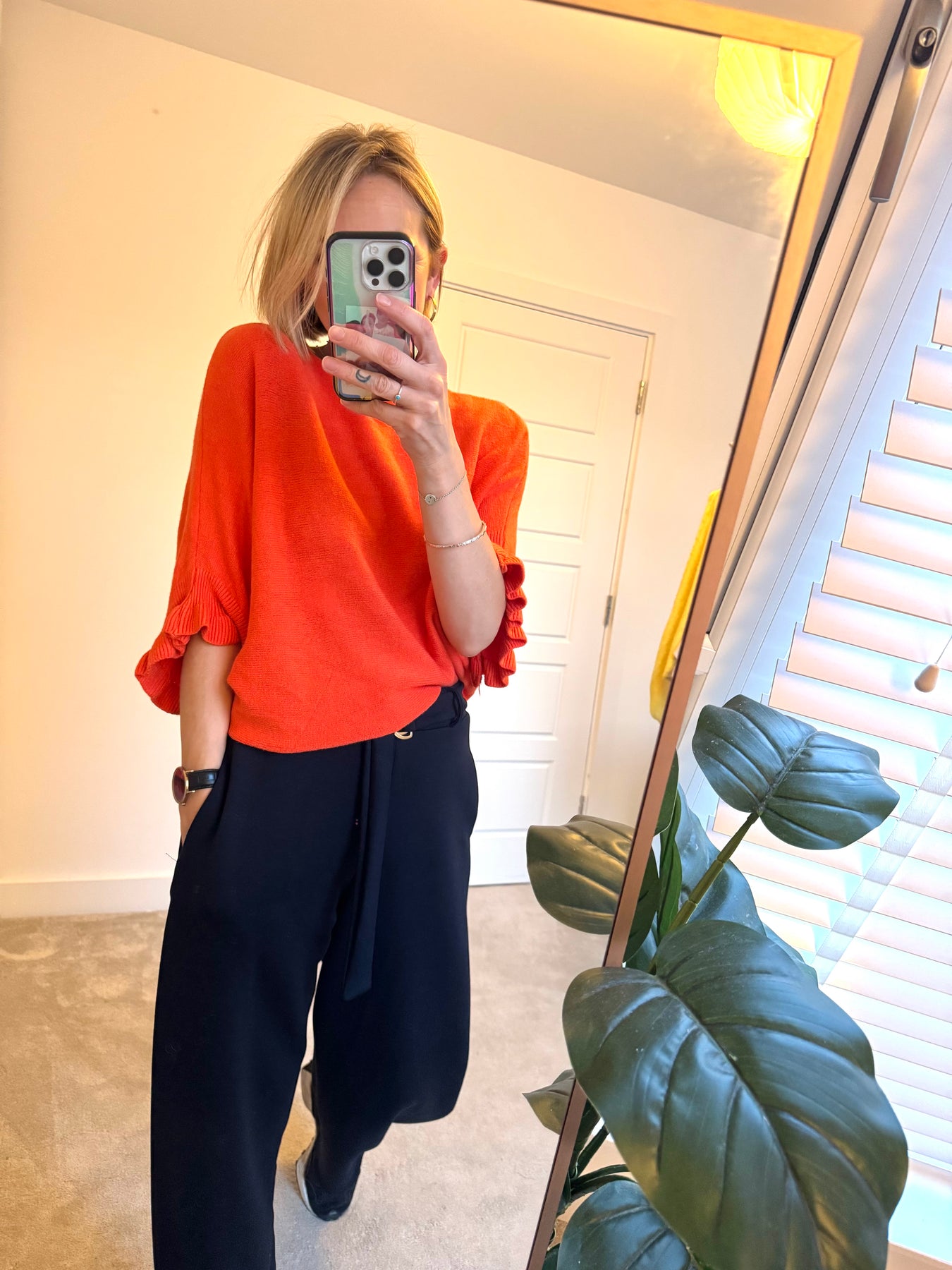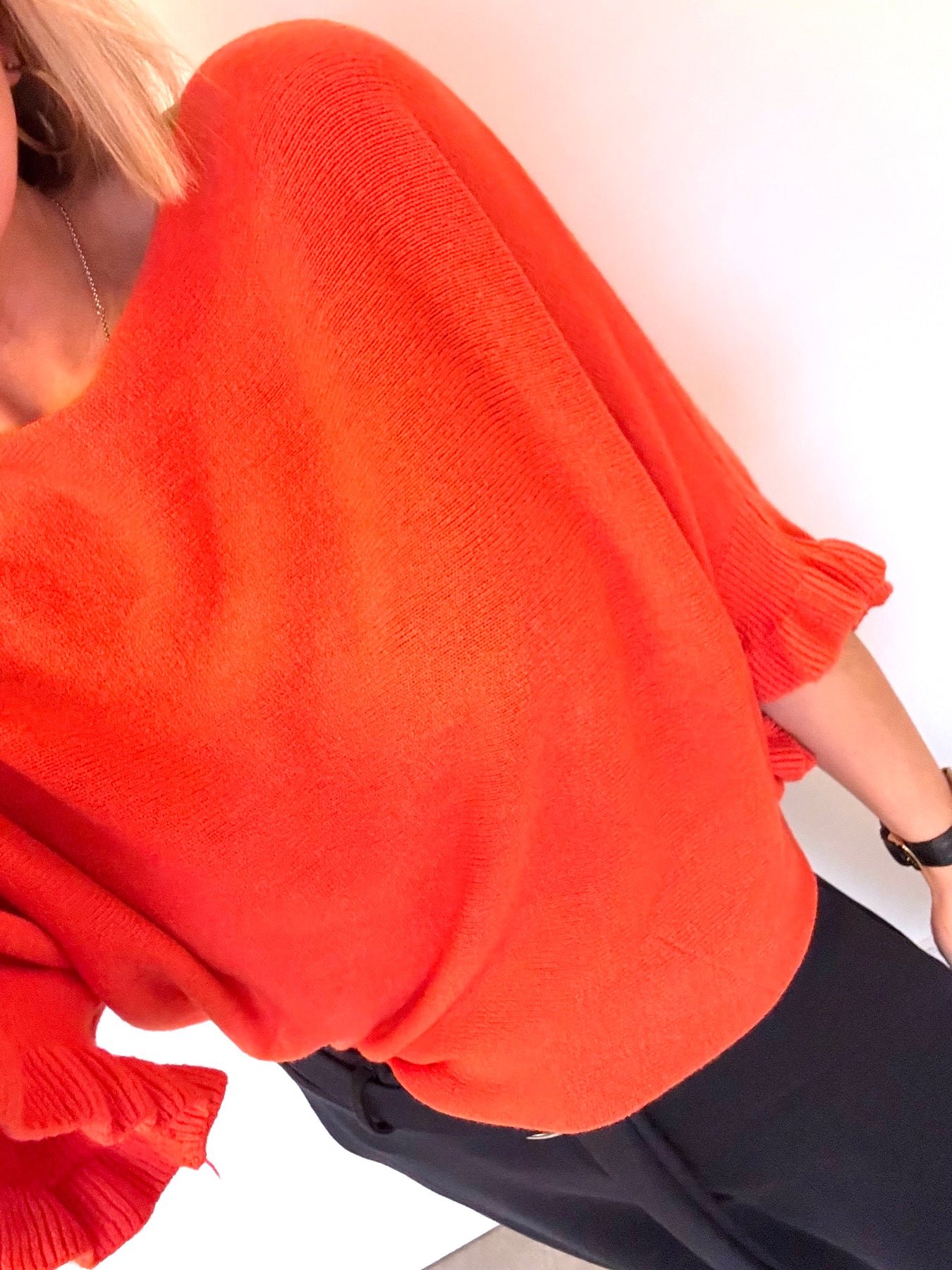 MIDI FRILL SLEEVE JUMPER IN ORANGE