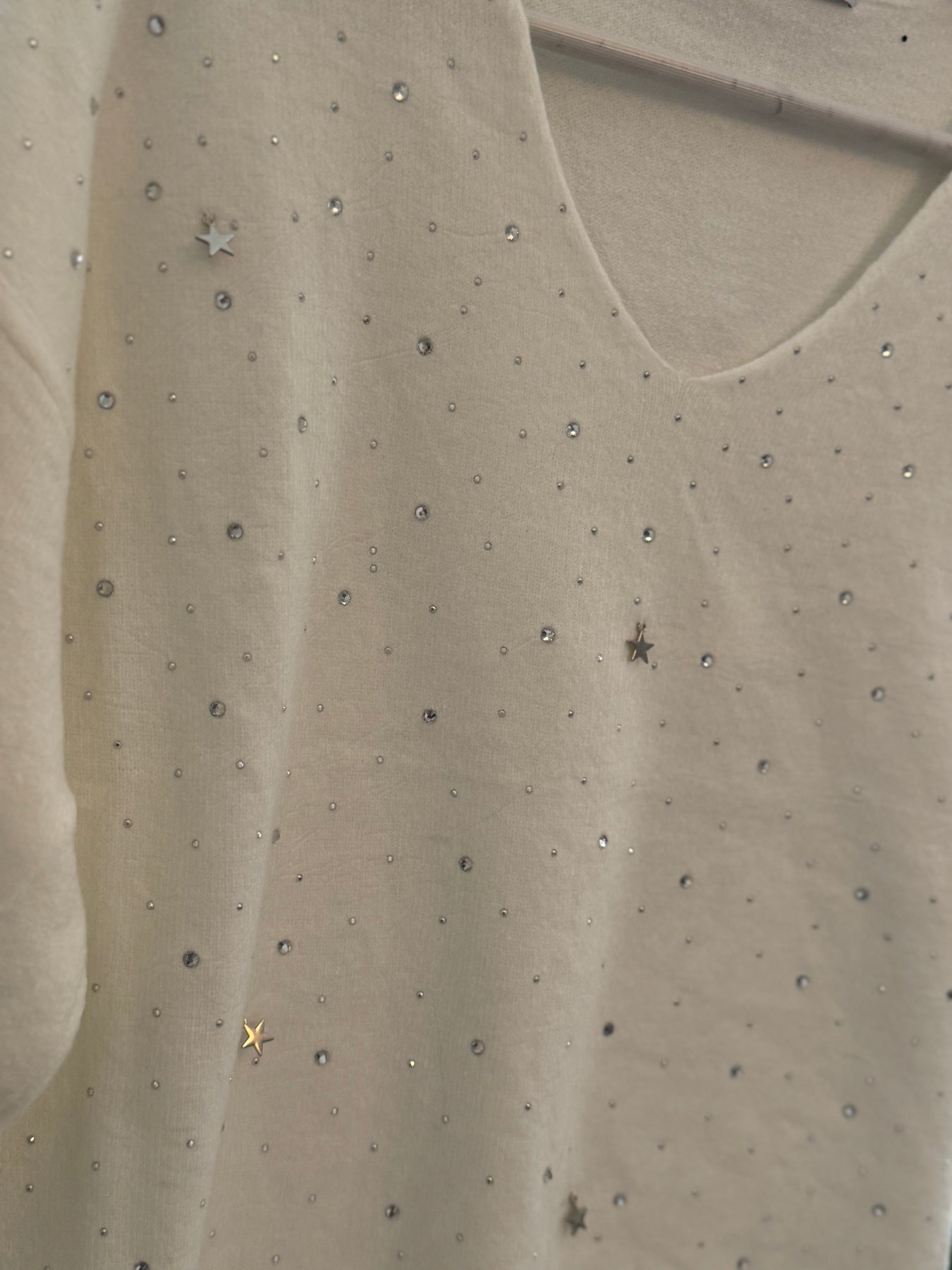 EMBELLISHED SHORT SLEEVE JUMPER IN CREAM