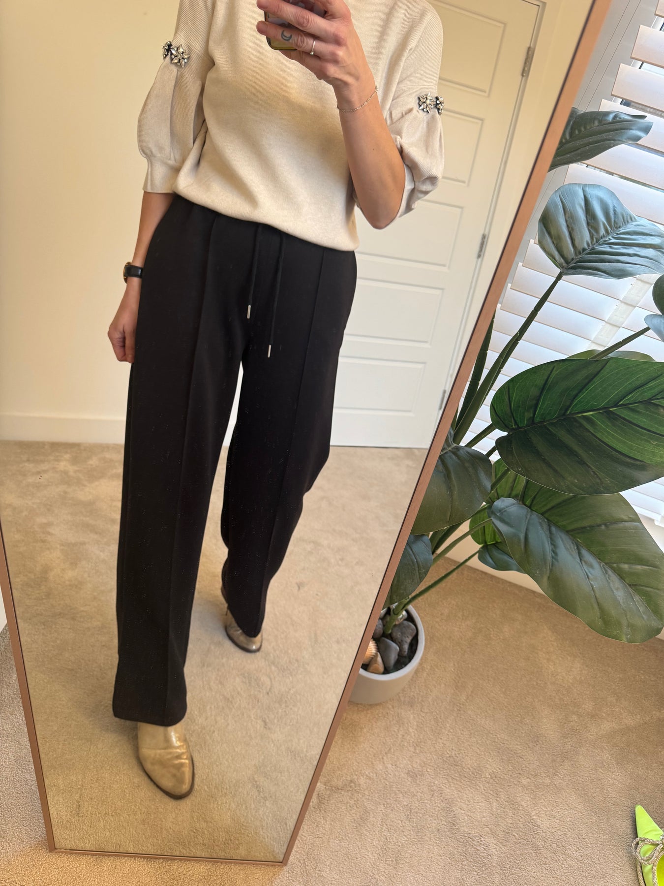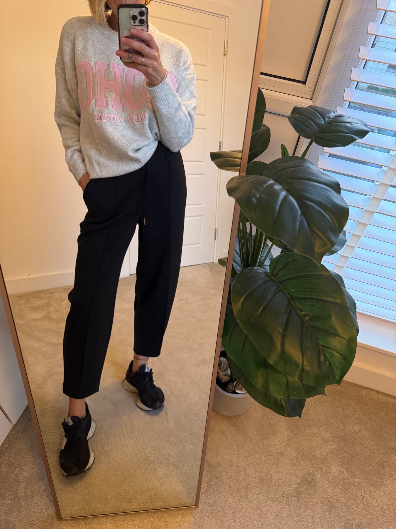 These straight leg joggers feature those all important pocket ( yay!) , an elasticated waist and a leg lengthening pin tuck to the front.