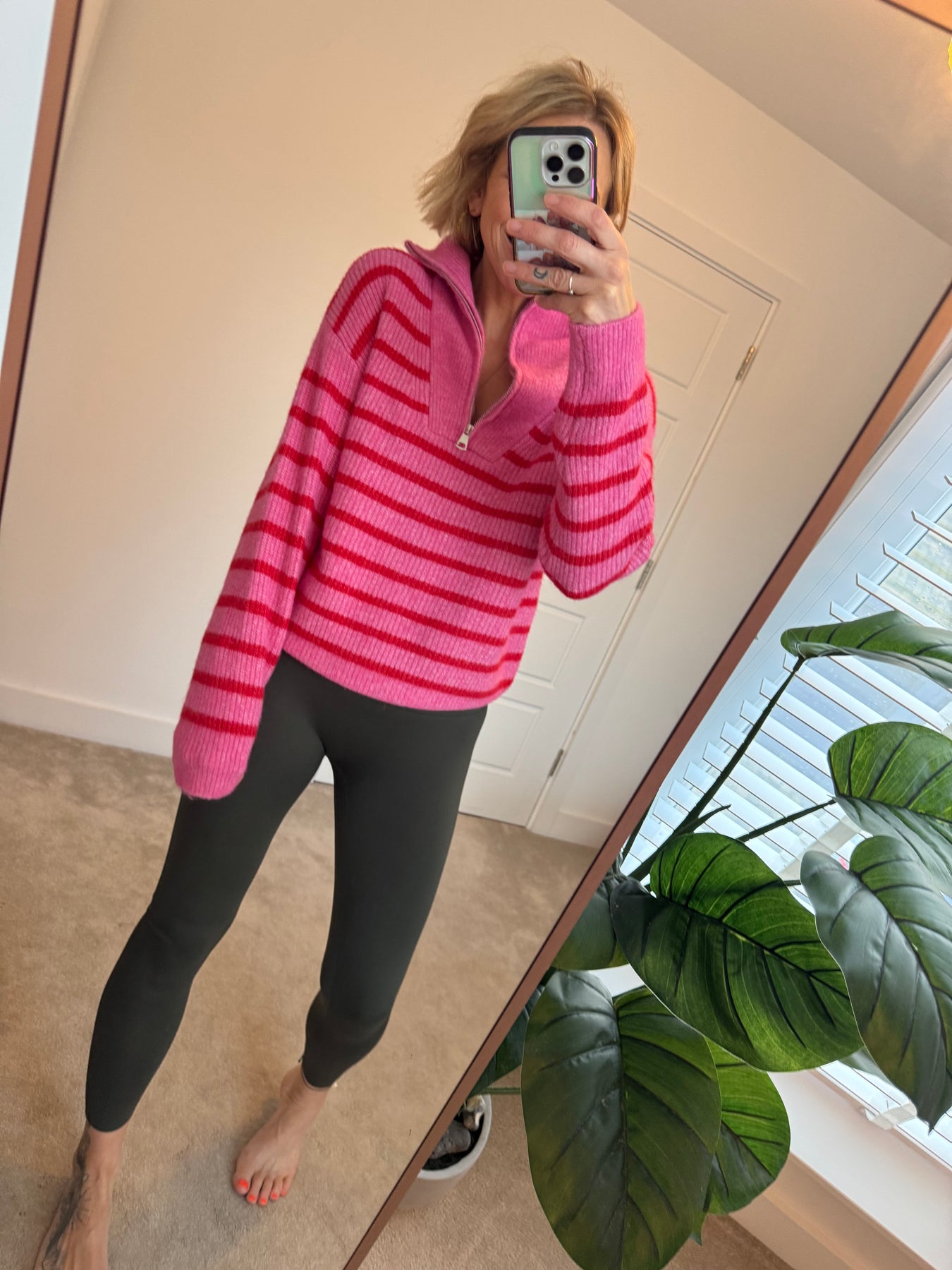 Not just for post piste , this super cosy wool blend  vibrant pink stripe jumper is cosy and adds a great pop of colour to your outfit.