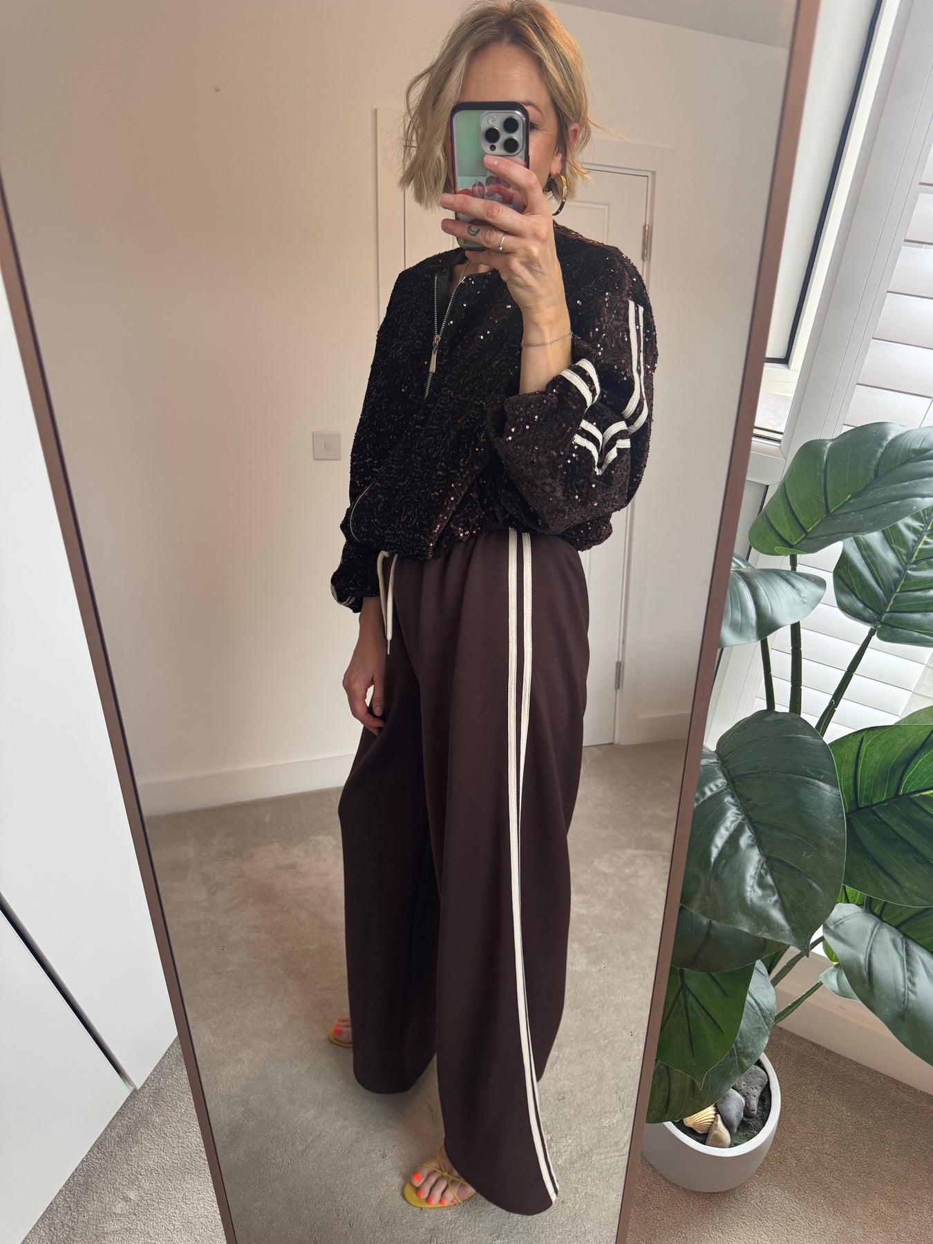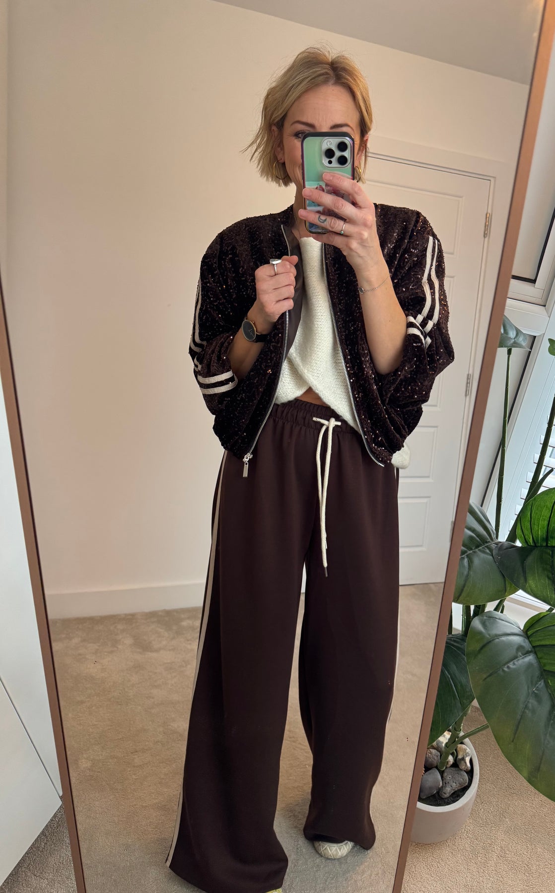 Try styling with the side stripe jogger, or ballon pants / jeans for a fun festive look.