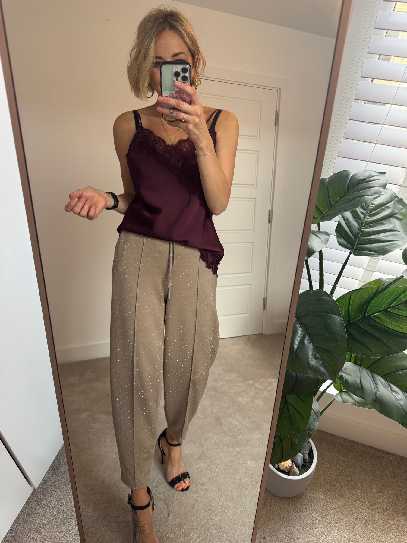 Style these relaxed fit trousers with the cross front jumpers for a relaxed outfit, or try dressing up with the cowl cami .
